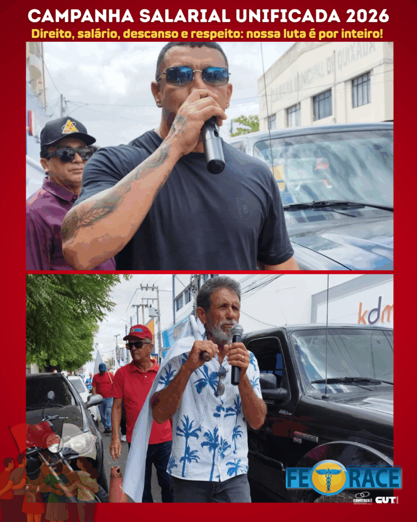 A Campanha Salarial Unificada dos Comerciários de Quixadá e Quixeramobim foi conduzida pelo presidente do SEC Quixadá, Jebson do Nascimento e pelos diretores César, Cícero, Evaldo, Gabriela, Geisiane, entre outros membros da diretoria. A Fetrace ressaltou ainda a atuação conjunta de sindicatos parceiros de várias regiões do estado, como Fortaleza, Iguatu, Caucaia, Itapipoca, além do Sindbeleza, Sindicato dos Sapateiros, Sintraafor e SINDSEF, que vêm contribuindo para ampliar o diálogo com a categoria e fortalecer a mobilização em torno da campanha.