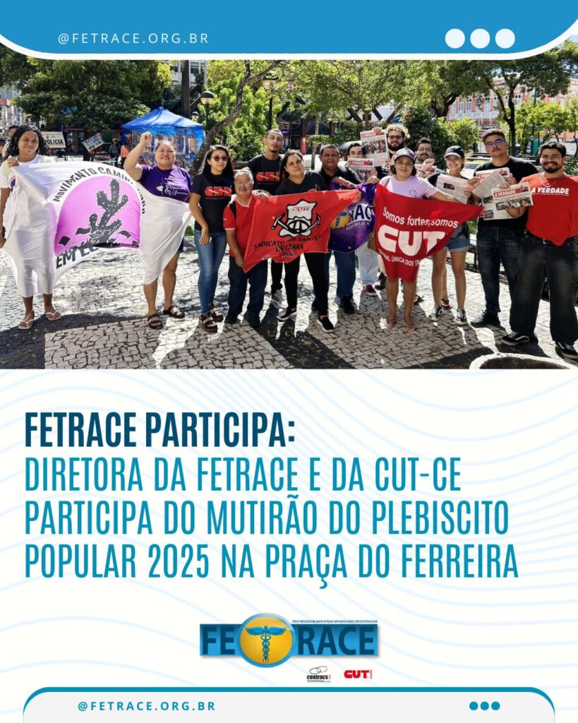 A direção da Federação dos Trabalhadores, Empregados e Empregadas no Comércio e Serviços do Estado do Ceará (Fetrace) apoia e participa do Plebiscito Popular 2025, que […]